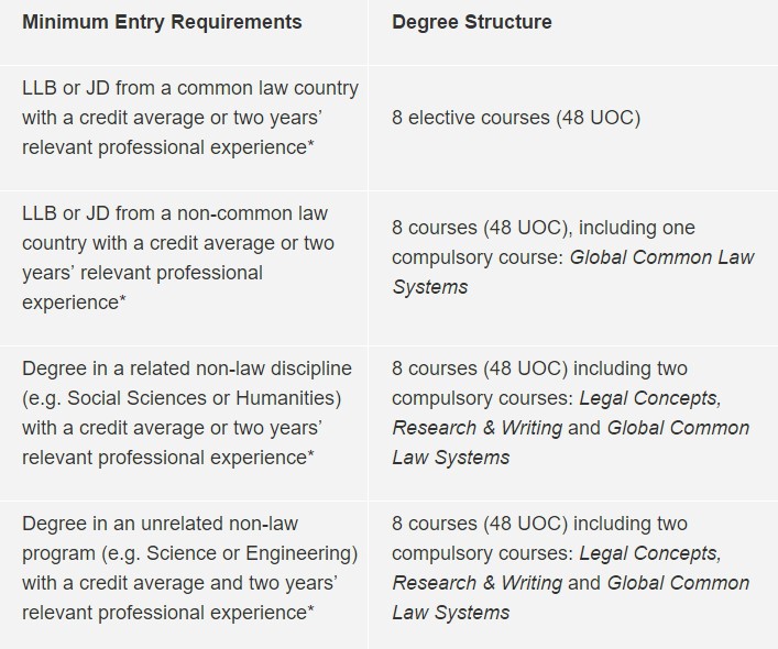 更重要的是,UNSW的LLM没有法律背景也可以申请哦!不同背景的同学申请要求如下: