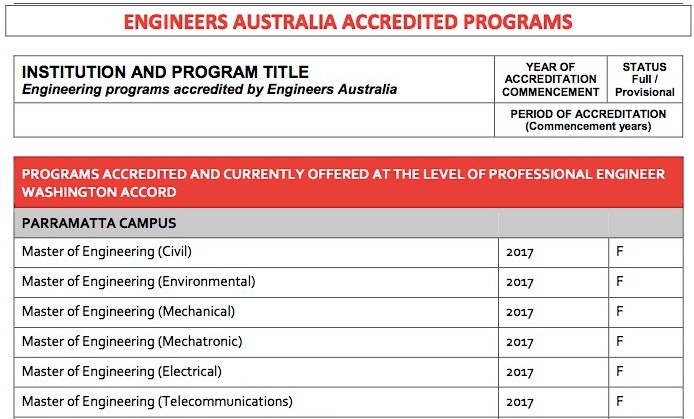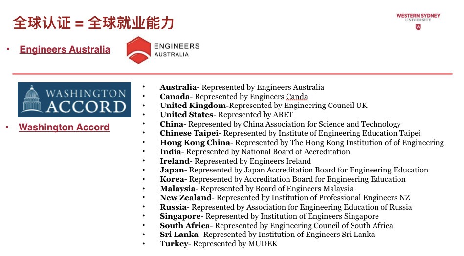 据Bridgeblue China 蓝留学的小编报道,西悉尼大学工程本科和硕士课程,获得EA全认证(Full),同时也是拥有全球通用认证-Washington Accord华盛顿协议。这些工程专业包括土木,电子电气,机械,机电一体化,电信,机器人与机电一体化。