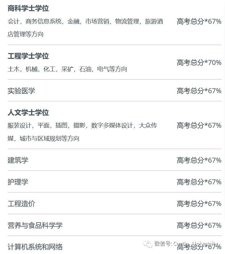 以下是科廷大学2019年高考录取以及奖学金的发放标准。