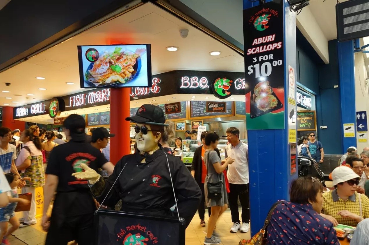 中午:Sydney Fish Market 悉尼鱼市,家庭席地而坐,在蓝天白云下品尝着美味海鲜大餐(午餐费用自理)