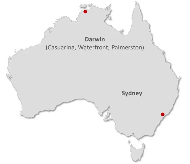 澳大利亚最北面的北领地被誉为“世界上最后的处女地”,首府是达尔文,热带气候(干旱季:5月-10月,20℃-31℃;雨季:11月-4月 25℃-33℃)。是澳大利亚第三大游轮码头。采矿、港口、旅游业、畜牧业是当地快速增长的经济产业。达尔文是进入亚洲的重要门户,直航新加坡4小时40分钟,直航深圳5.5小时(逢3、7每周两班)。