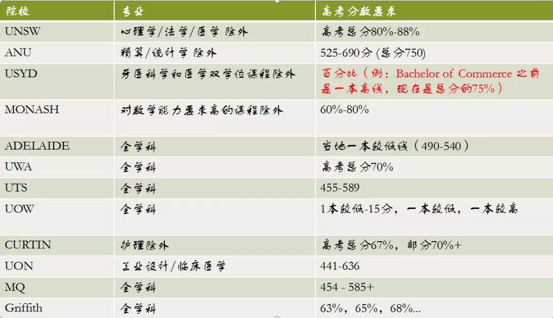 目前除了悉尼大学公布了2019年高考录取要求,其他大学均未公布,加诚老师根据去年各大院校对高考要求,为大家整理了一下,2019年具体高考录取要求,静待澳洲各大院校的官方通知哦~