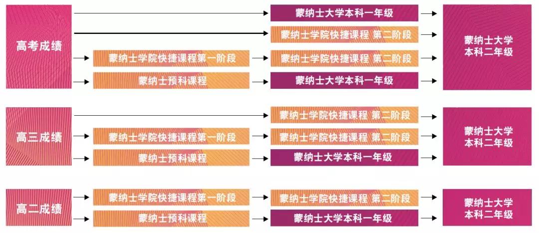 如果你是高二或高三的在读生,那么蒙纳士学院将根据你高二或高三的学业成绩进行录取,并且为你配置入读快捷课程或蒙纳士大学预科课程,在你完成配置的课程并达到相关要求后,则有资格直接入读蒙纳士大学本科。