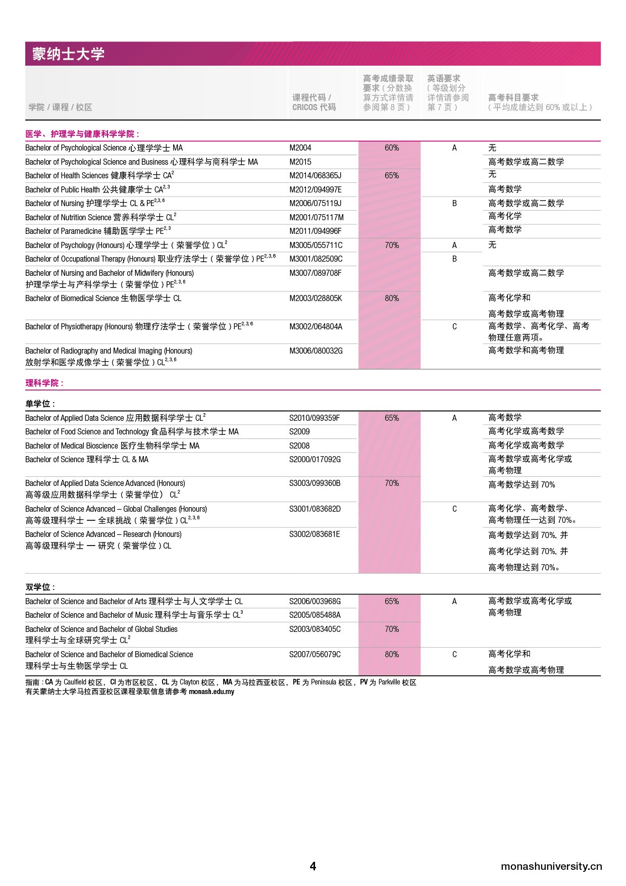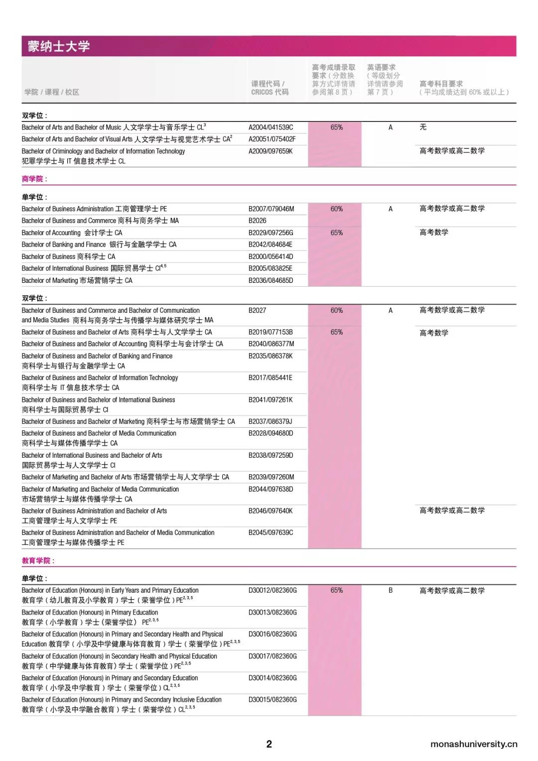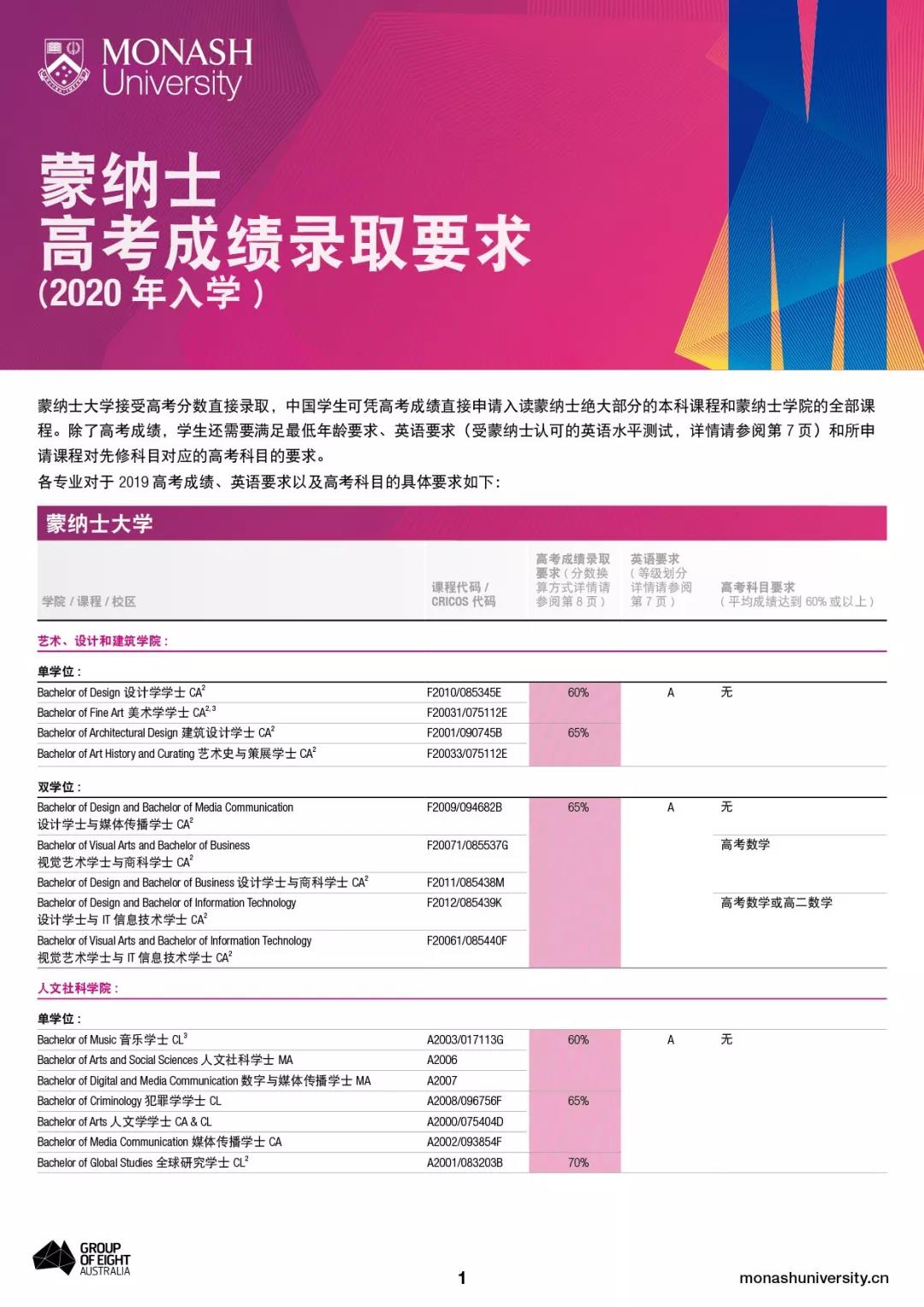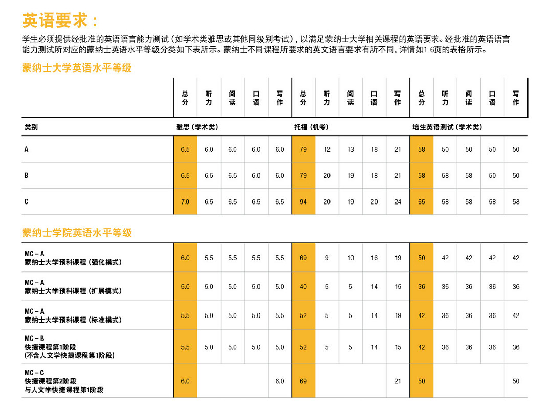 蒙纳士大学的高考录取分数要求