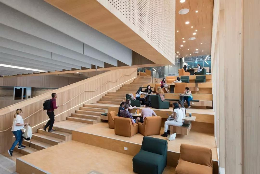 现代化的建筑设计使这座教学楼不仅具有时尚美感,同时兼具实用功能。这座教学楼拥有60多种不同形式的学习场地,为各类型课程及学习模式提供了定制化且充足的教学空间。高大上舒适的学习环境和浓厚的学习氛围,是不是有学习到不想走的feel!