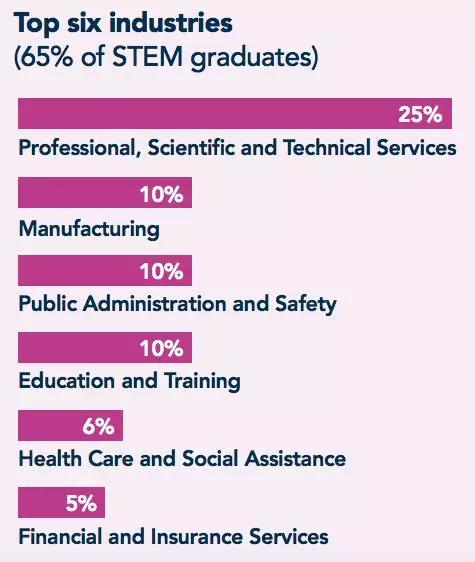 65%的STEM毕业生所分布前六大行业