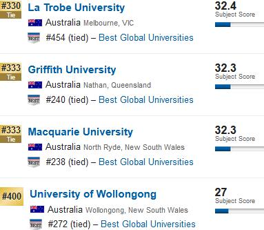 另外的4所非八大院校,除了麦考瑞大学(#333)名次同比有所下滑外,其他3所即格里菲斯大学(#333)、乐卓博大学(#330)、昆士兰科技大学(#317)的世界排名均有所上升。