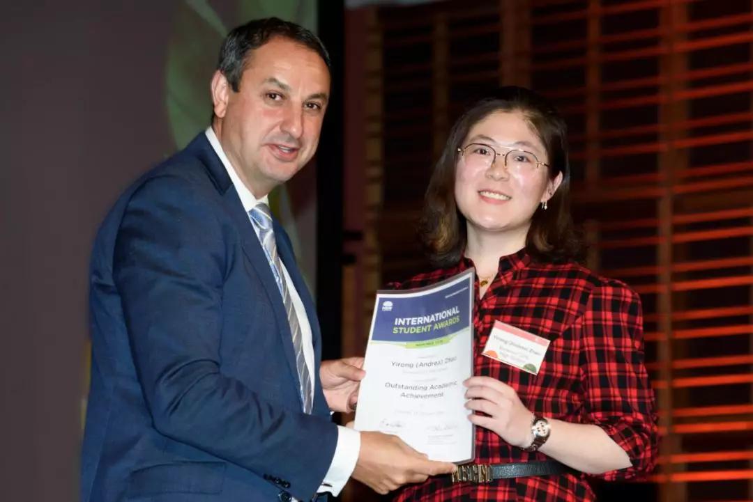 赵轶嵘从新州教育部副秘书长手上接过2018年国际留学生杰出学业成就奖获奖证书