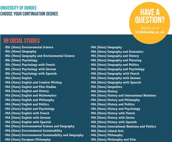 University of Dundee邓迪大学2018年1月开学国际大一课程仍在招生中,学生如果错过了2017年秋季入学,可以选择18年1月份开课的邓迪大学国际学院国际大一(IS1)课程,课程衔接2018年秋季开学的大二课程: