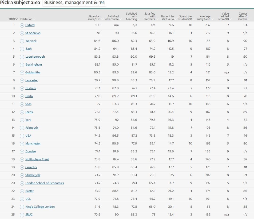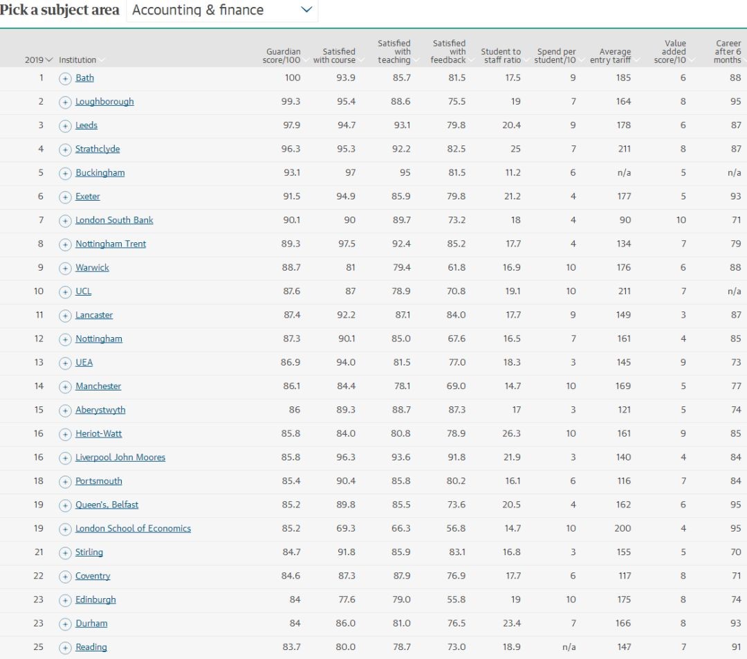 2019年卫报英国大学专业排名,会计商科第一名又换了!