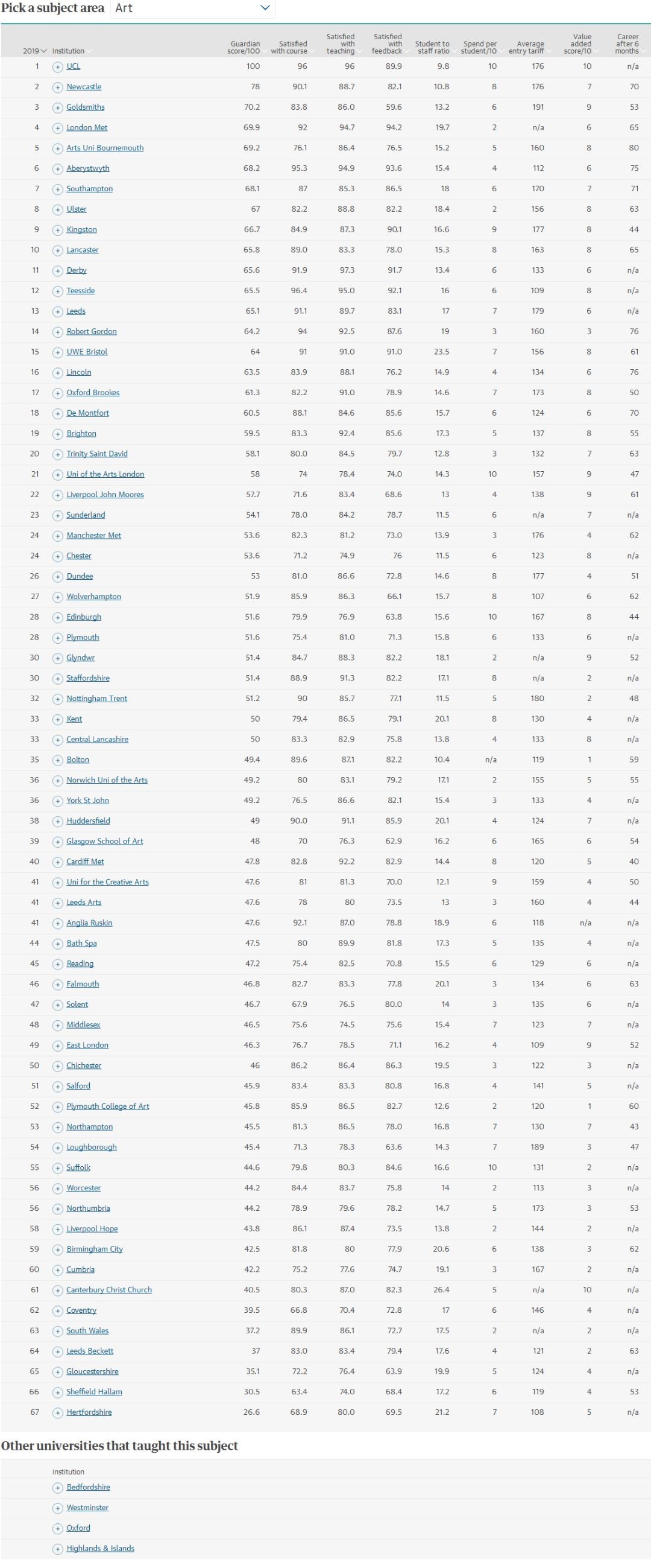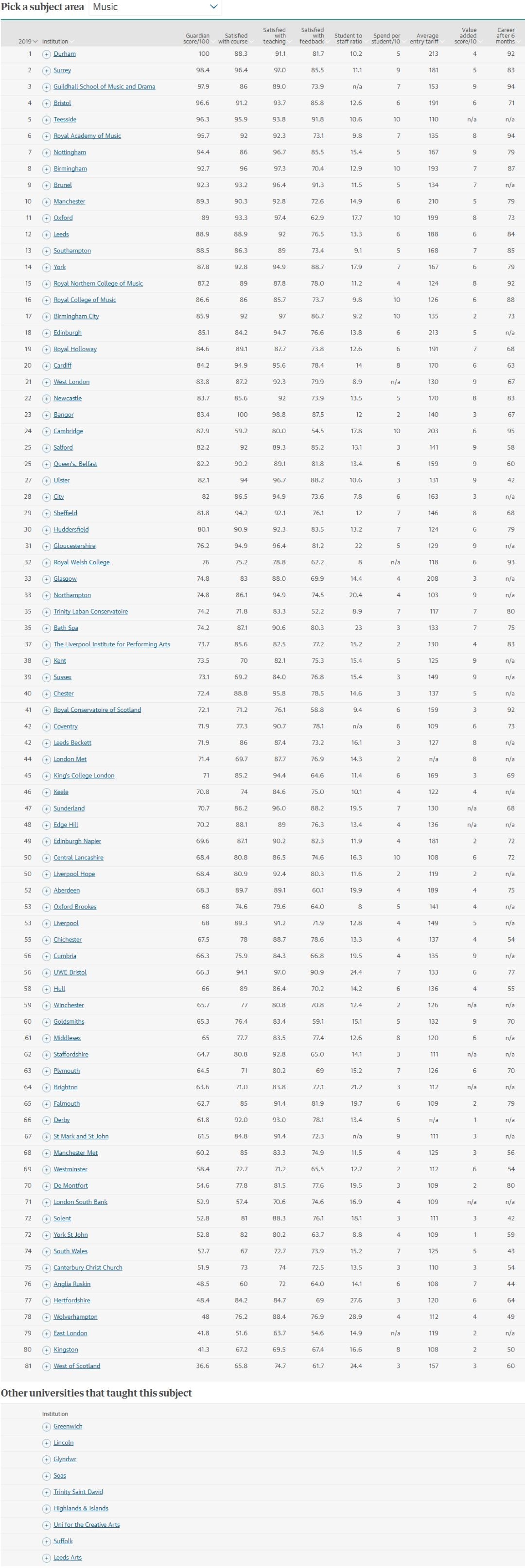 【导读】2019年卫报英国大学专业排名,音乐艺术类今天Bridgeblue China 蓝留学的小编要介绍的排名,是艺术专场到底哪所大学是文艺圈的扛把子?『
