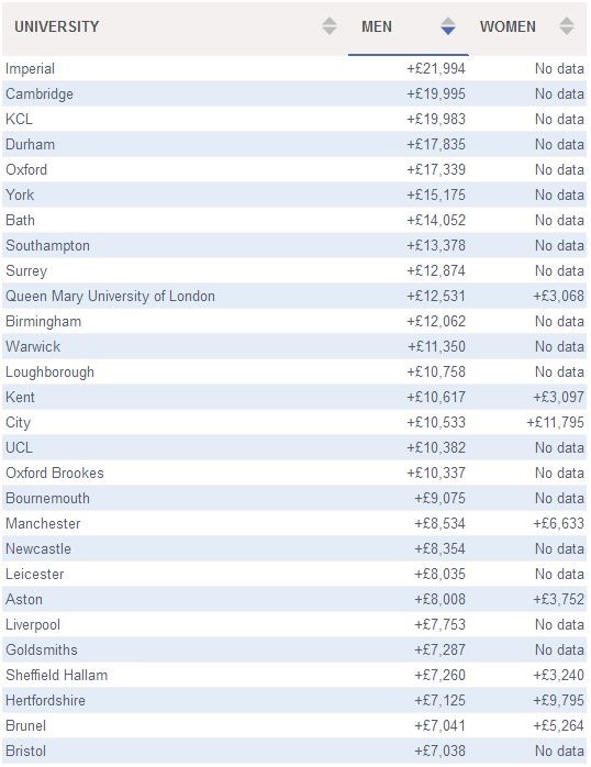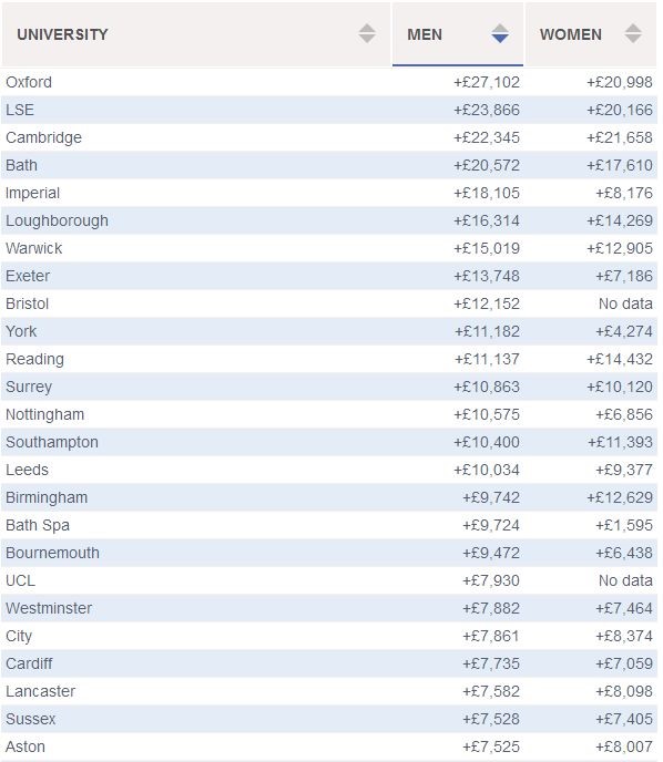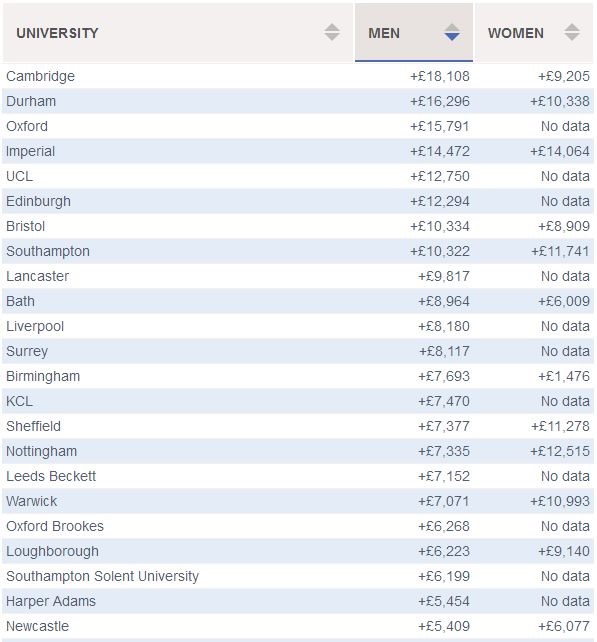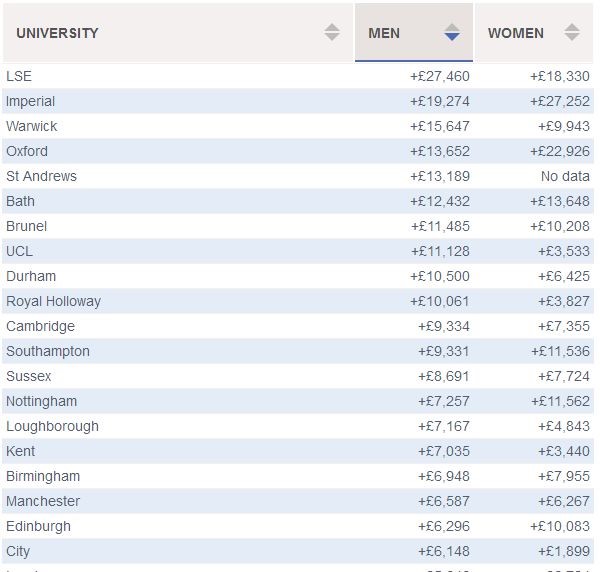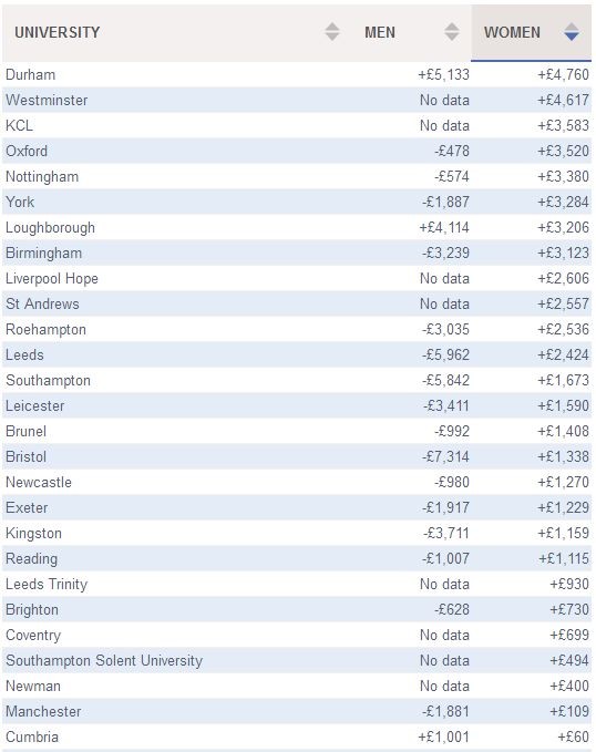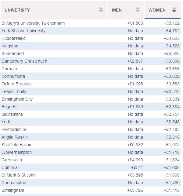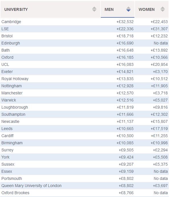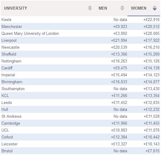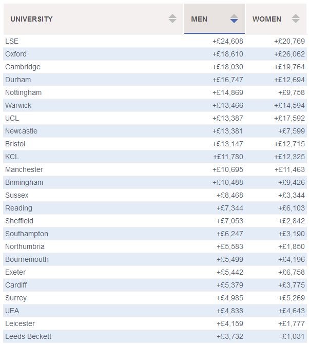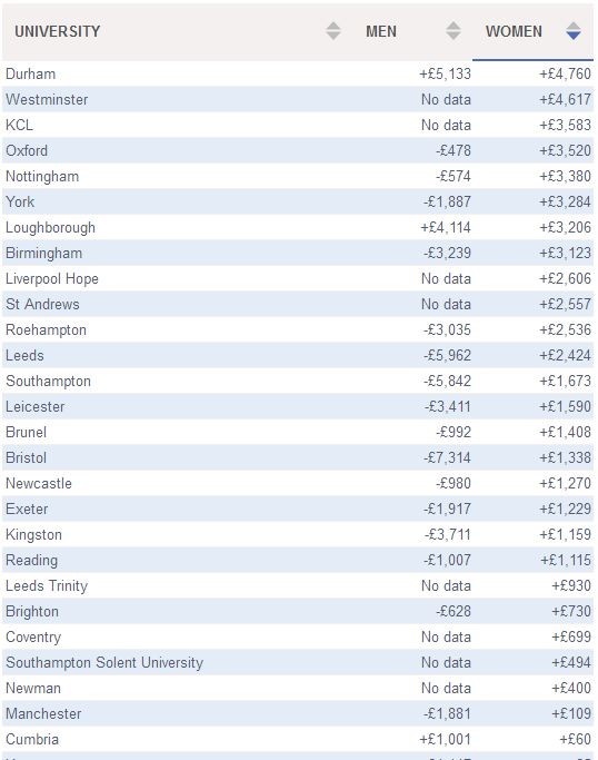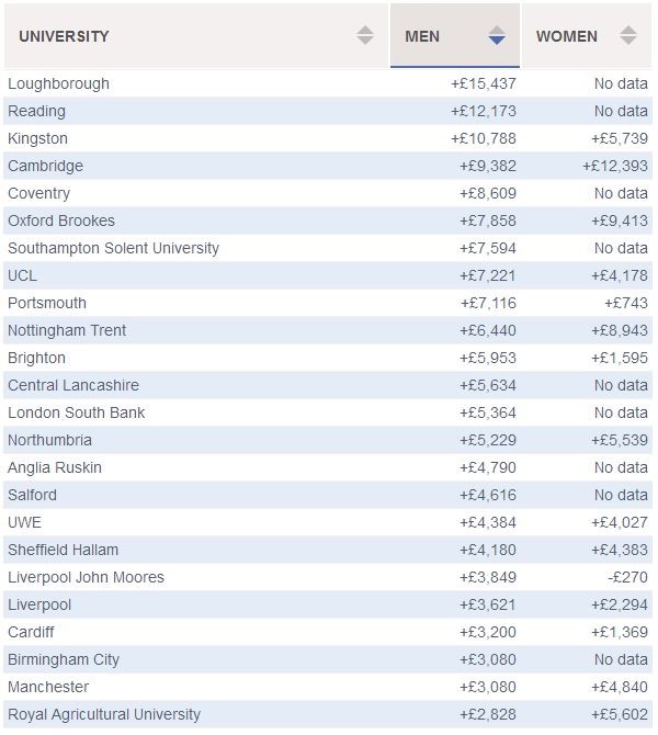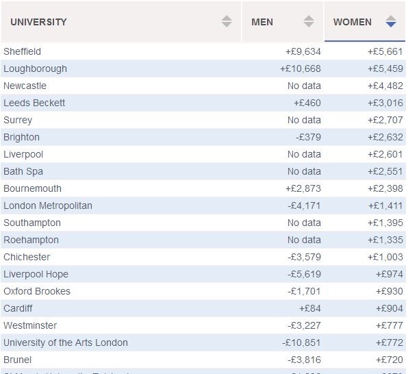 拉夫堡和谢菲的传媒专业毕业生工资明显高于其他大学,而男性工资又明显高于女性,约为女性的两倍!