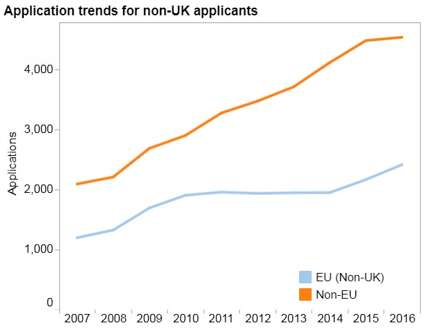 2007至2016非欧盟学生人数增长了一倍多,