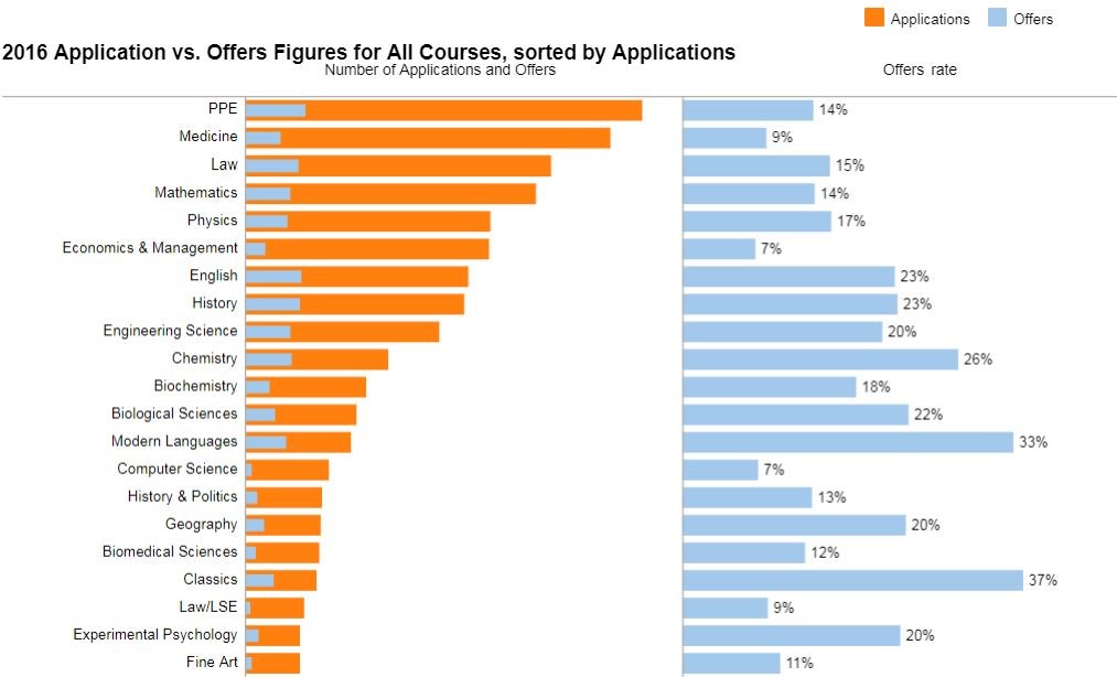 牛津也有录取率30%以上的专业,