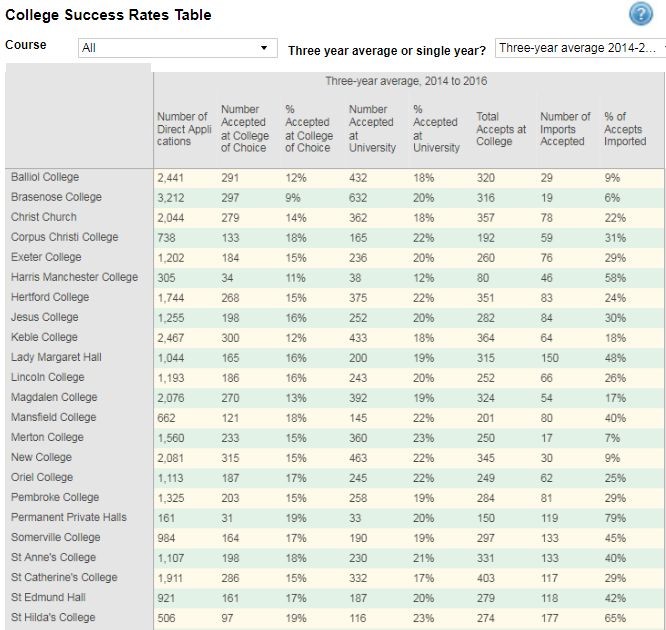 2014-2016牛津各学院申请人数统计