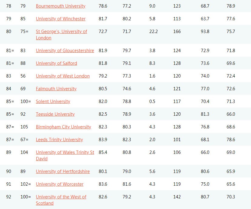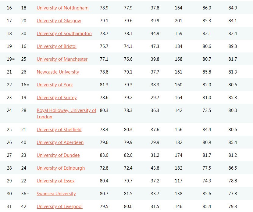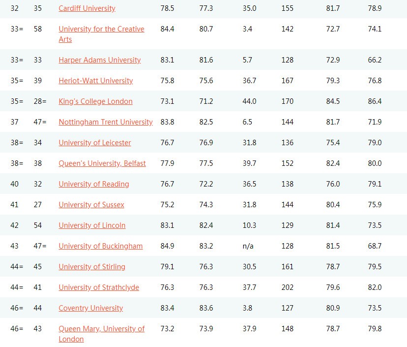 这也就解释了,为什么位于伦敦的大学,如LSE、KCL、UCL的教学部分得分都不高,虽然这些大学在研究部分的得分可能远胜于偏僻地区的大学。