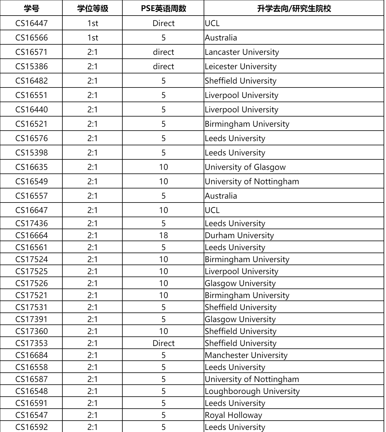 - 70%学生达到2.1以上学位等级(部分学生的毕业成绩和升学去向)