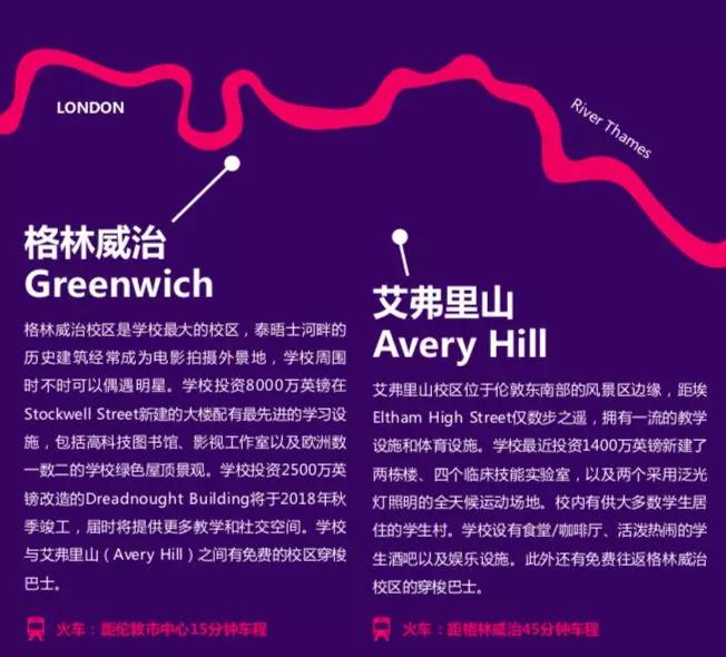格林威治校区地处美丽的泰晤士河畔,与金融区Canary Wharf相望,毗邻世界著名的格林威治天文台,本初子午线就从校园里穿过……