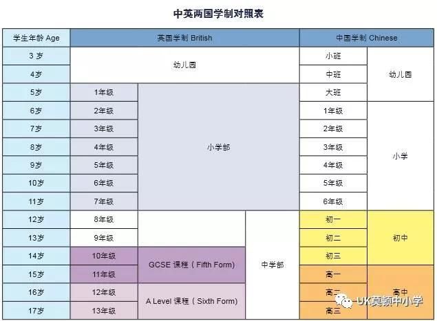 英国和中国的中小学学制对比
