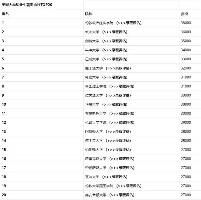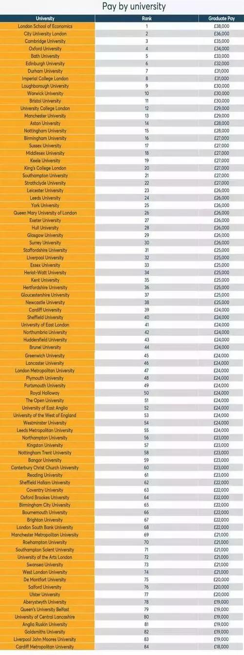 其中,英国G5精英大学中,有4所薪资排名TOP10,其中伦敦政治经济学院(LSE)毕业生以每年38,000荣登榜首!剑桥大学排名第3,牛津大学排名第4,帝国理工学院排名第8。