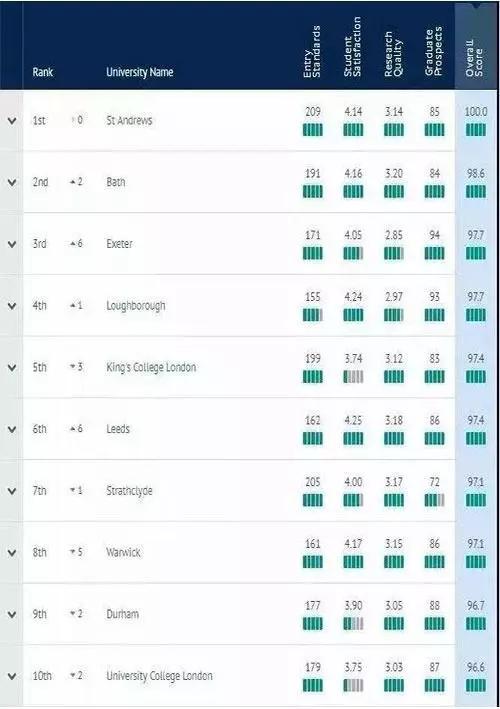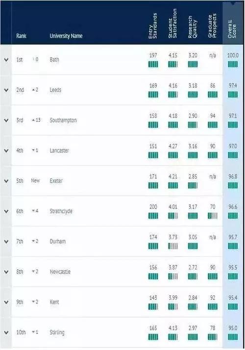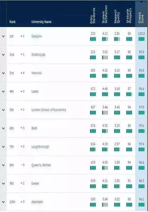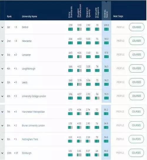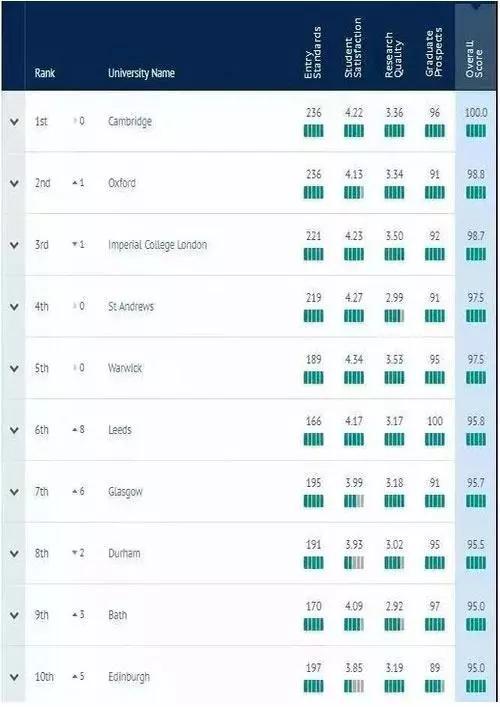 来看详细解析~(以下院校推荐来自The Complete University Guide官网所作的测评,分别参考了四个因素:录取标准、学生满意度、教学质量、毕业生前景。)