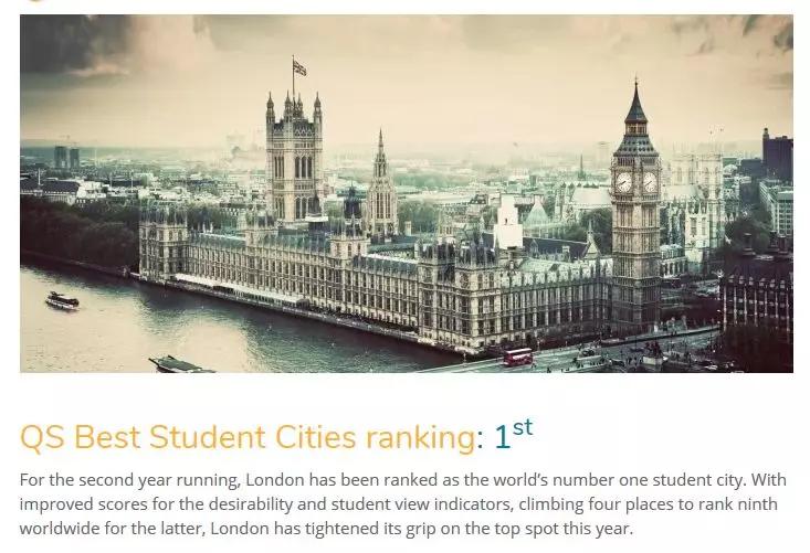 QS全球最佳留学城市排名指标共有6项,分别是:STUDENT VIEW(学生反馈)、RANKINGS (大学排名)、STUDENT MIX(学生构成)、DESIRABILITY(城市吸引力)、EMPLOYER ACTIVITY(就业前景)、AFFORDABILITY(消费水平)